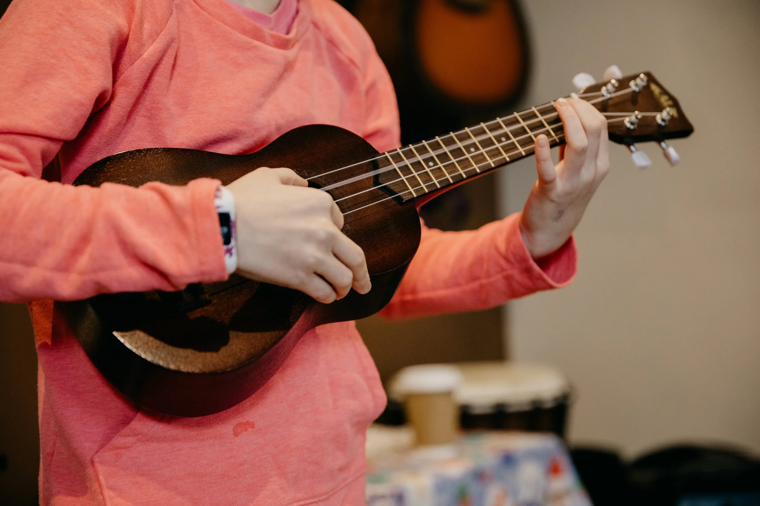 The simplicity and joy of learning ukulele has inspired a whole new generation of very young children to learn to play but also for more seasoned guitar players to “transfer” their skills to. This portable and simple instrument will have you expressing yourself and playing widely recognizable songs almost immediately. Not to mention a great tool for songwriting. Each of our teachers work diligently to meet the unique individual needs of the student and personalize lessons for maximum engagement. Ukulele lessons are a great starting place for young musicians and the perfect instrument to add under a seasoned musician’s belt.